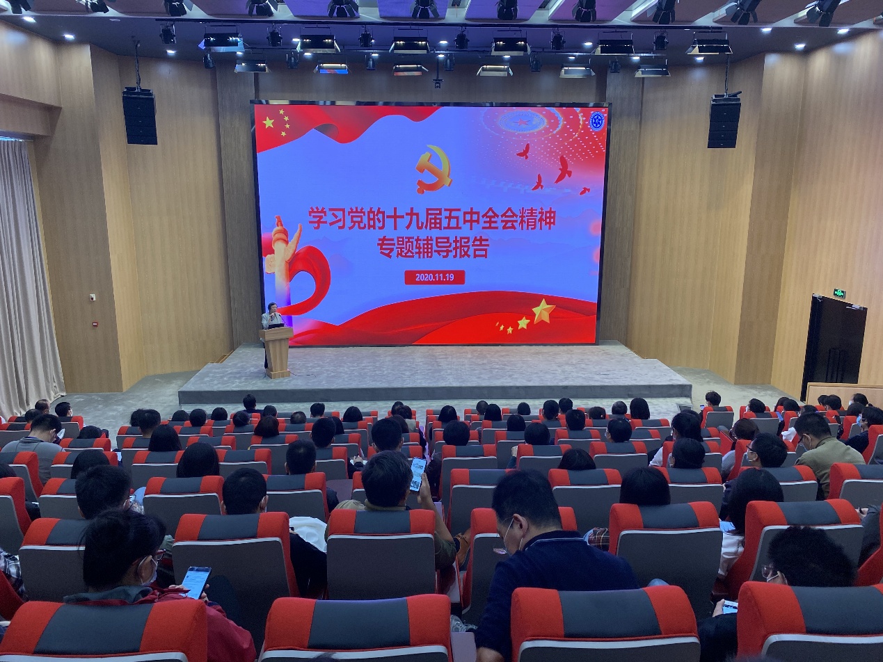根据高研院党委关于认真学习宣传贯彻党的十九届五中全会精神的工作部署和有关要求,为进一步提升学习实效,11月19日下午,高研院党委特邀中共上海市委党校卜新兵教授作“擎画全面建设社会主义现代化国家新征程的宏伟蓝图”专题报告,300余名党员同志参加学习。报告会由党委副书记、纪委书记唐铮主持。