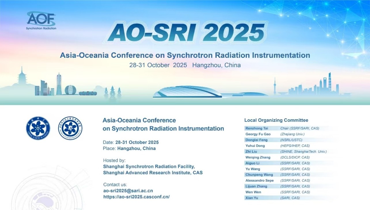 亚太同步辐射会议是亚太地区同步辐射研究领域最高水平的国际会议,旨在促进亚太地区同步辐射研究组织之间的学术交流,提升亚太地区同步光源装置之间的合作,以及促进世界范围内同步辐射研究领域的科学家和工程师之间的共同研究与合作。首届AO-SRI会议于2022年在日本仙台召开。中国科学院上海高等研究院和浙江大学合作将于2025年10月28日-31日在杭州举办第二届AO-SRI会议,预计会议规模约250人。